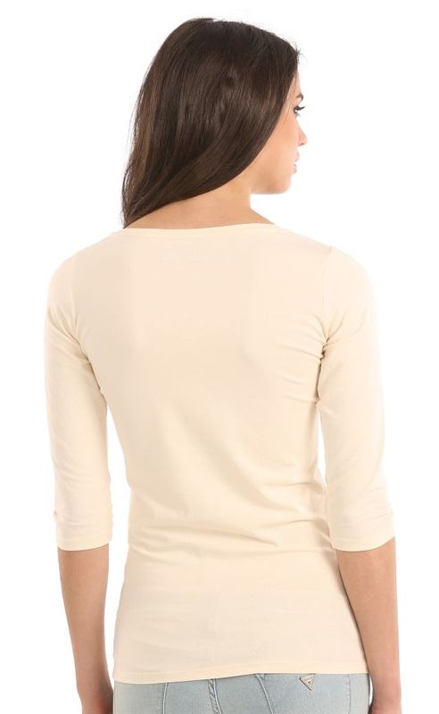 Gebroken wit logo shirt met V-hals van het populaire merk Guess (3/4 mouw). Normale lengte met mooie pasvorm.