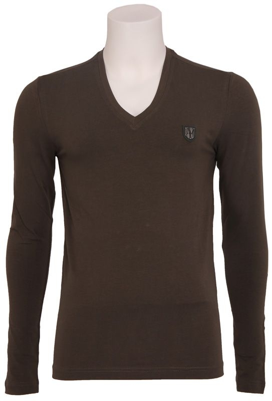 Legergroen basic shirt met lange mouwen van Antony Morato met v-hals.