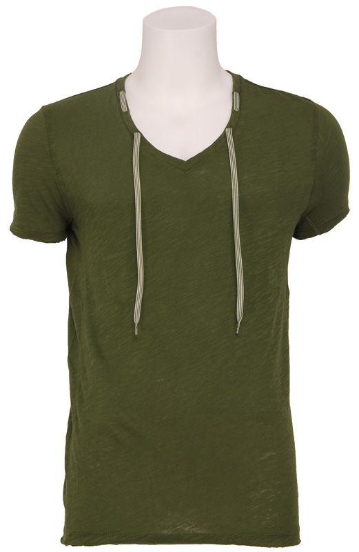 Groen t-shirt van Antony Morato met v-hals. De hals is voorzien van een touw dat tot ongeveer tot de borst komt. Hele mooie groene army kleur!
