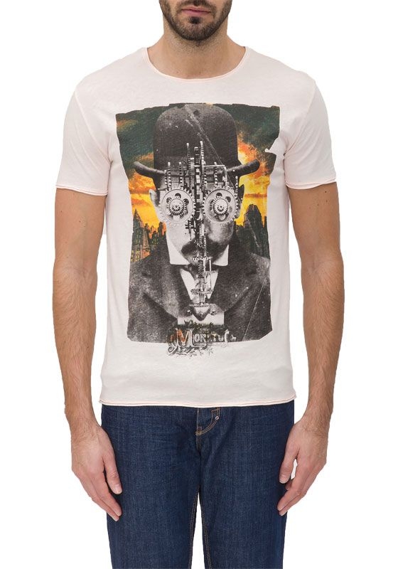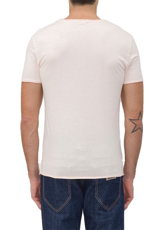 Licht roze t-shirt van Antony Morato met ronde hals. De voorkant is voorzien van een plaatje.