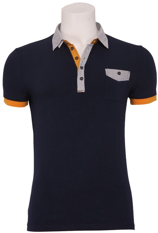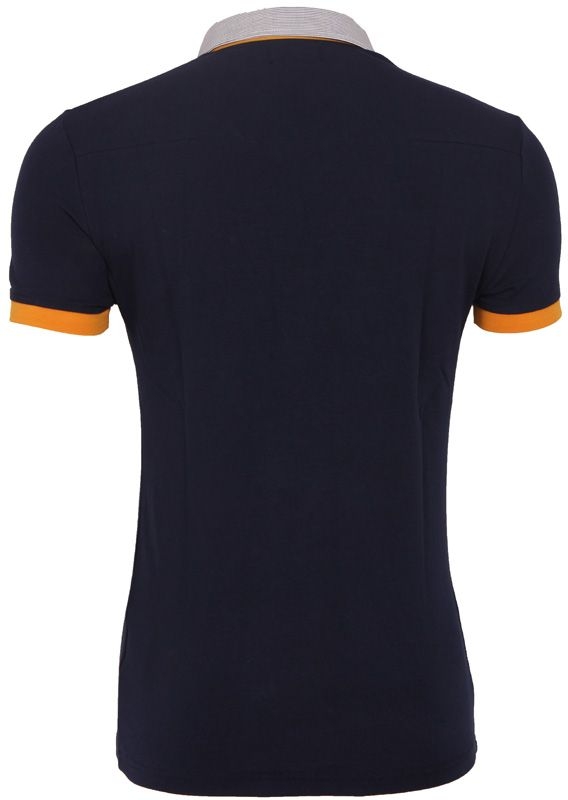 Donkerblauwe polo shirt van Antony Morato met gestreepte boorden. Bij de mouwen en bij de hals voorzien van opvallende gele accenten voor een zomerse uitstraling!