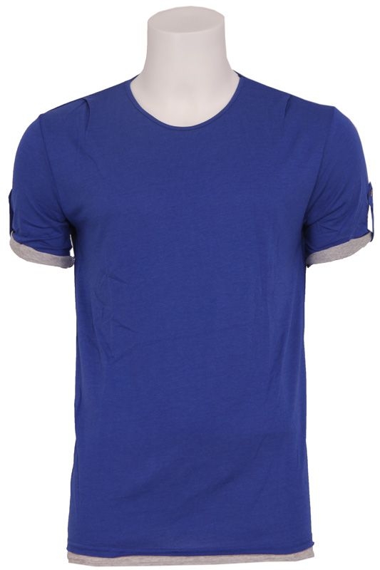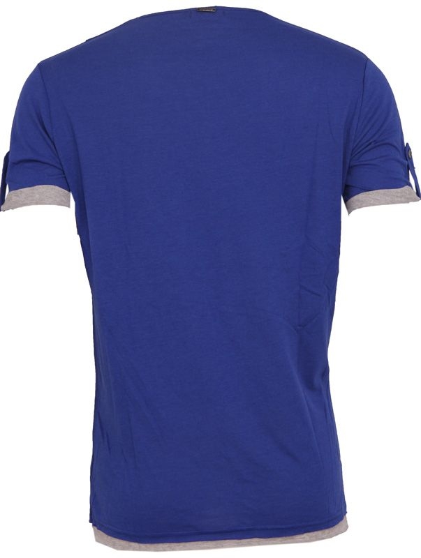 Blauw/paars t-shirt van Antony Morato met ronde hals. Door de grijze uiteinden onderin en bij de mouwen lijkt het net alsof je twee shirts over elkaar hebt. Hele mooie helderblauwe/paarse kleur!