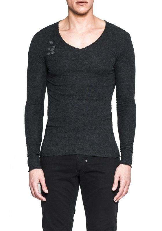 Trui met v-hals van Antony Morato in de kleur grijs. Op de rechter borst heeft de trui 5 bollen voor een apart effect.