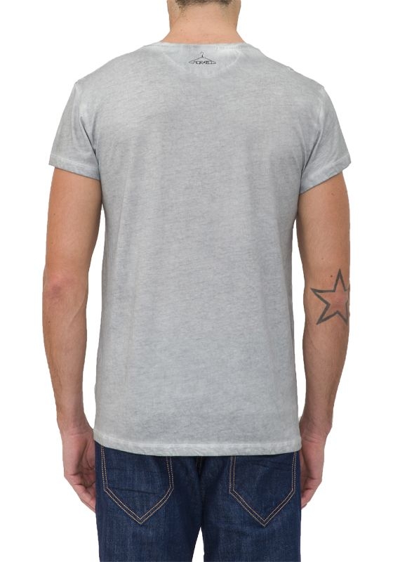 Grijs shirt van Antony Morato. De bovenkant is voorzien van een Amerikaanse vlag in het donkergrijs. Normaal model en lengte.