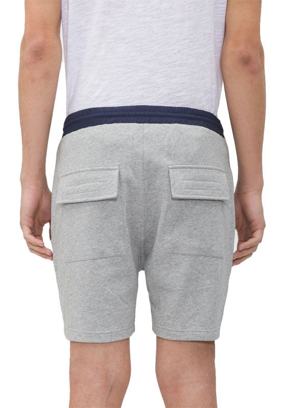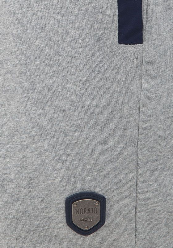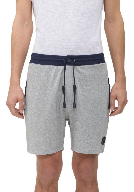 Grijze sport short van het Italiaanse kledingmerk Antony Morato. De tailleband en de zakken zijn in het donkerblauw en op de linker broekspijp staat een Antony Morato logo.