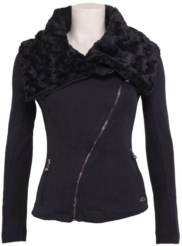 Erg mooi vest van Met jeans. Uitgevoerd in de kleur donkerblauw en voorzien van een speelse schuine rits. De kraag is voorzien van een fijne 'bontkraag'. Aansluitend model.