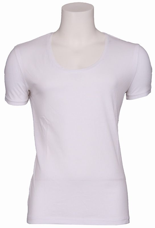 Wit basic t-shirt met diepe ronde hals van Antony Morato. Normale pasvorm.