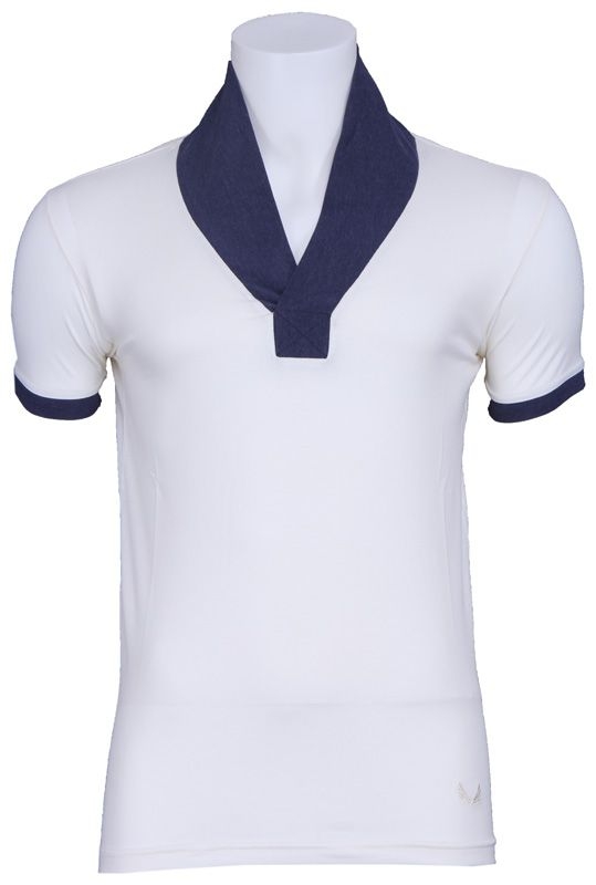 Mooi aansluitend V-neck shirt van Zumo in de kleur ecru/donkerblauw.