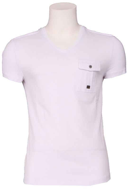 Wit t-shirt van Antony Morato met een v-hals. De voorkant is voorzien van een zakje op de linkerborst. Aansluitend model. Ook verkrijgbaar in het olijf bruin.