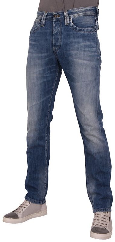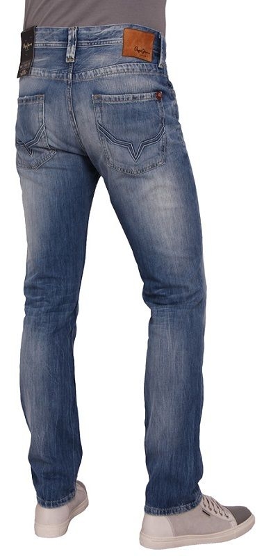 Blauwe jeans van het bekende kledingmerk Pepe jeans. Normale pasvorm en lengte.