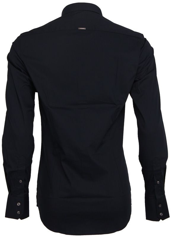 Mooi donkerblauw overhemd van het merk Antony Morato. Het overhemd heeft aan de binnenkant van de kraag 2 witte strepen en de onder de knoopsluiting in het midden is het overhemd ook voorzien van wit. Hierdoor krijgt het overhemd een aparte look! Tevens zit er versteviging in de kraag zodat de kraag mooi rechtop blijft staan.