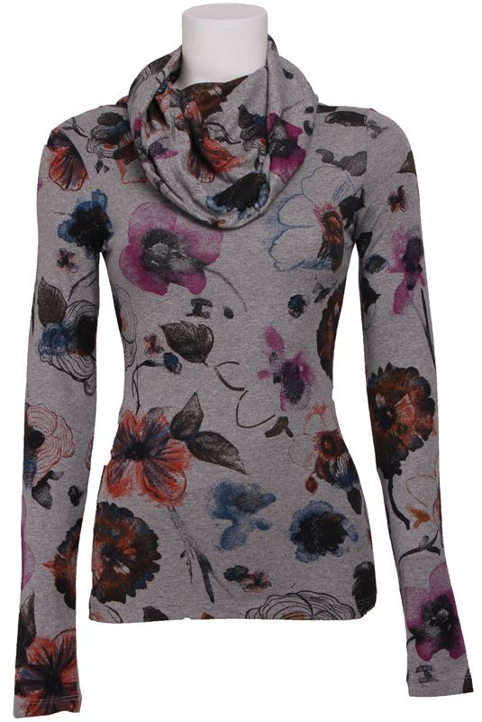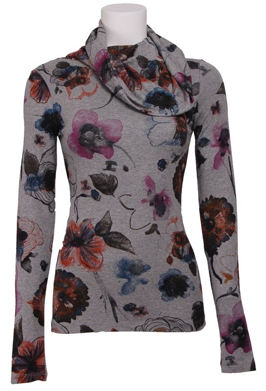 Fleurige grijze coltrui van Dept. Mooi aansluitend met leuke print.