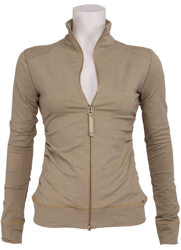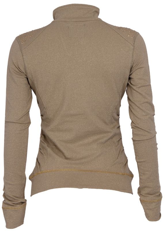 Comfortabel gouden vest van het bekende kledingmerk Phard. Het vest heeft een sportief model maar is chique afgewerkt waardoor het bij meerdere outfits past. De schouders zijn afgewerkt met gouden studs en over het gehele vest zit een subtiele gouden glitter. Mooi afgewerkt met gouden naad. Sluiting met rits.