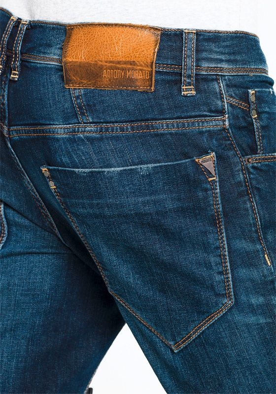 De super skinny Fredo is een jeans van Morato met smal aflopende pijpen. In de broek zitten mooie Morato details verwerkt en heeft een mooie donkere wassing.
