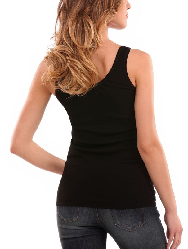 Zwarte tanktop van Guess met glitter accenten op de borst.