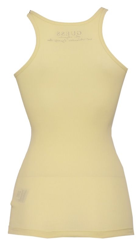 Aansluitende, gele tanktop van Guess met de tekst Guess Los Angeles California 1981. Op het logo zitten kleine, zilveren studs voor een apart effect! Deze tanktop is een echte "must have" voor de lente/zomer! LET OP: De kleur geel is feller dan op de foto!