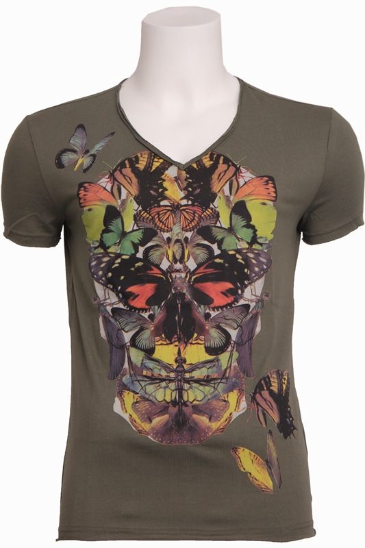 Donkergroen shirt met vintage v-hals en mooie bloemenprint op de voorkant. Hele zomerse uitstraling en met vele stijlen te combineren!