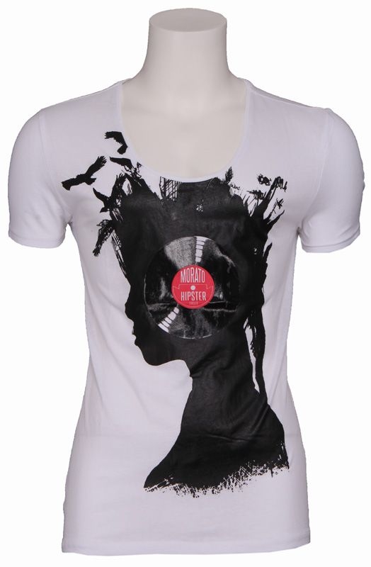 Logo t-shirt van Antony Morato in de kleur wit. Op de voorkant is een zwart hoofd afgebeeld gezien vanaf de zijkant. In het midden zit een opvallend rood rondje waar de merknaam Antony Morato in vermeld staat. Normale pasvorm.