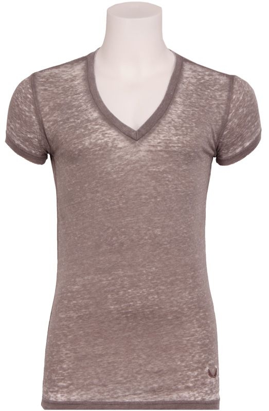 Vintage look v-hals t-shirt van het merk Zumo. De stof is heerlijk dun voor warme zomerdagen. Pasvorm is normaal en lengte ook. Uitgevoerd in de kleur beige.