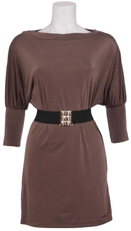 Jurk van Amy Gee met lange mouwen en een riem (inclusief). De stof is van een glanzende stof.