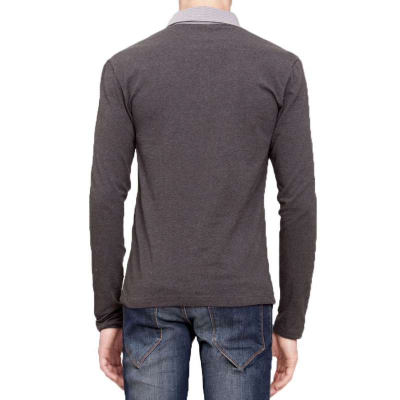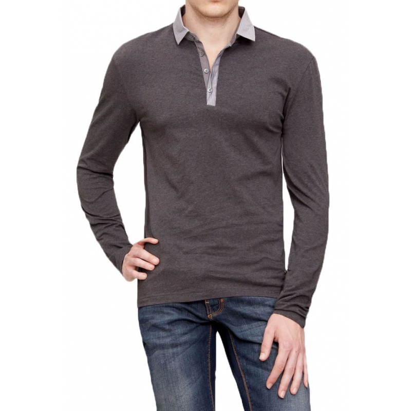 Nette longsleeve polo van Antony Morato. Met gestreepte grijze kraag en donkergrijs aansluitende body.