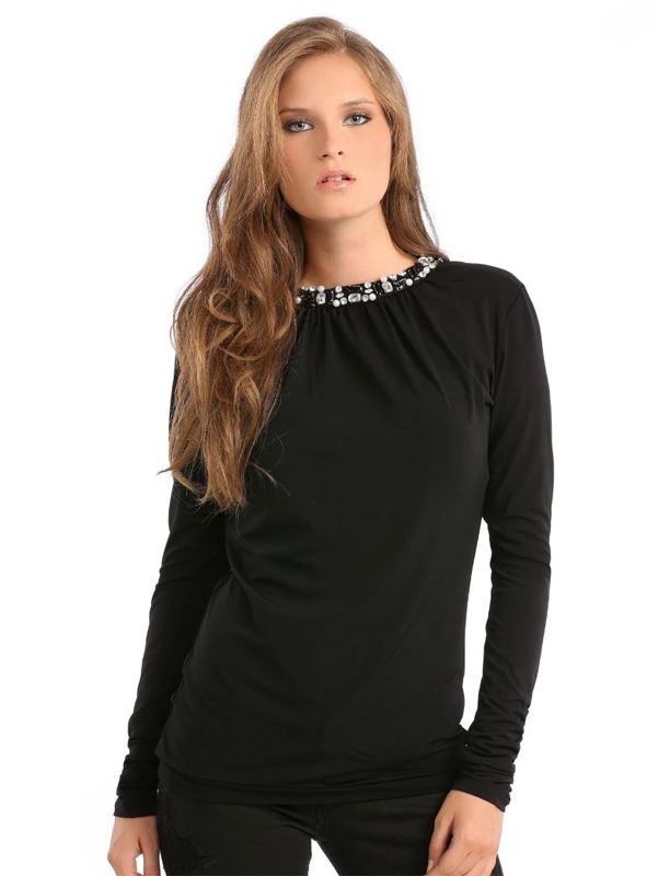 Prachtig shirt met lange mouwen van Guess. Het shirt heeft een ronde hals bewerkt met diamanten, studs en kralen voor een glamour effect! Aan de achterkant heeft het shirt een schuine opening. ideaal voor een etentje of stapavond, je steelt helemaal de show met dit kledingstuk!