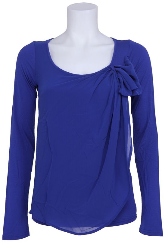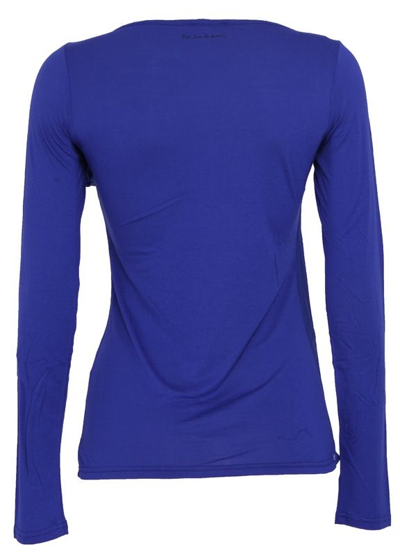 Blauwe longsleeve van Dept. Door de polyester laag aan de voorkant bij elkaar gehouden door de strik krijgt de longsleeve een speelse uitstraling. Pasvorm en lengte is normaal.