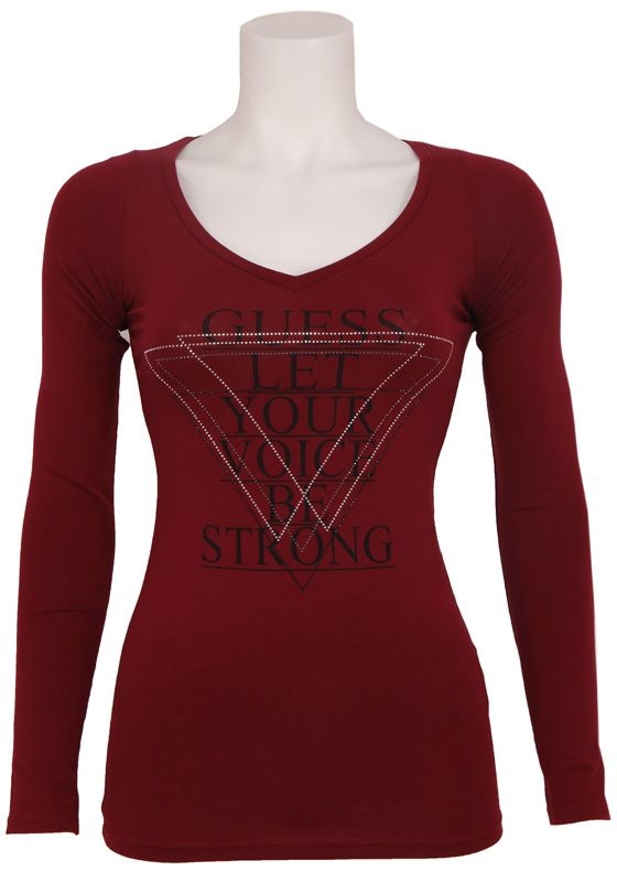 V-hals longsleeve van het merk Guess. Op de voorkant is een duidelijk Guess logo te zien.