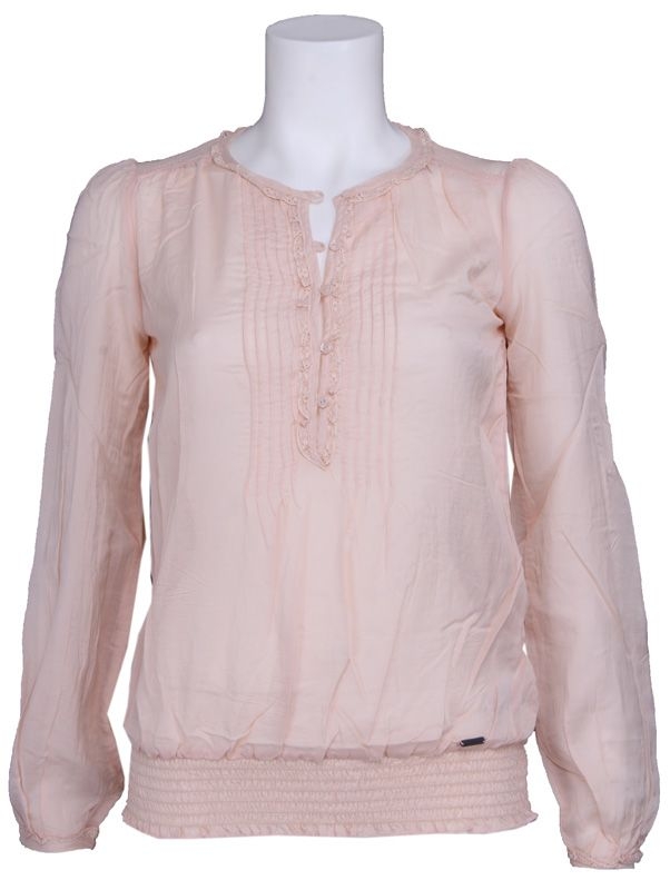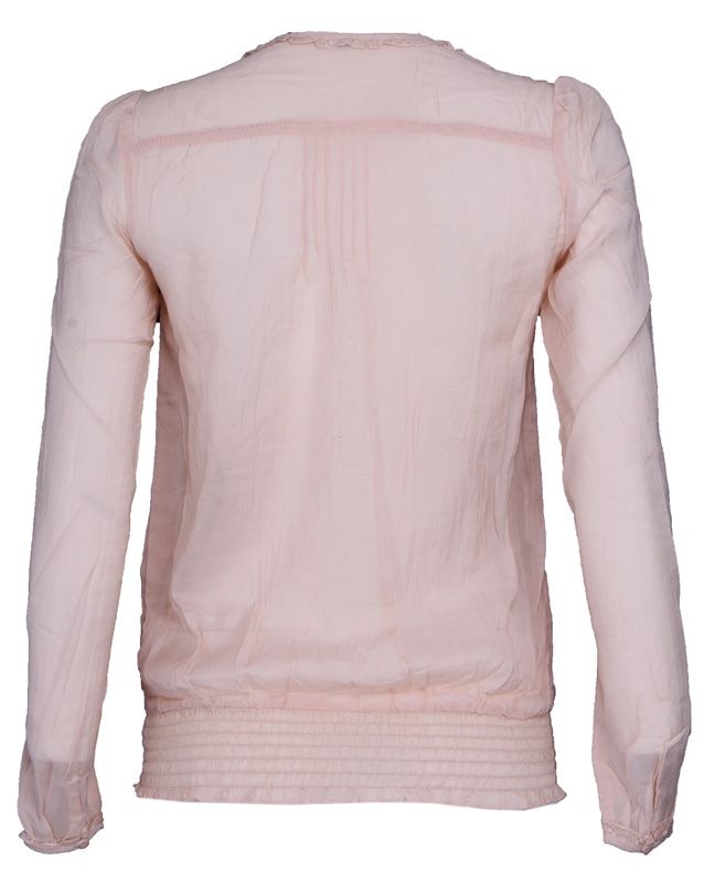 De Marcela blouse van Pepe jeans is een lichtroze met 'ouderwetse' elementen. Je trekt de blouse gewoon over het hoofd want er zijn maar knopen tot net over de borst. Er zitten leuke kanten accenten bij de boord en bij de knoopjes. Tevens een kanten element bij de mouwen.