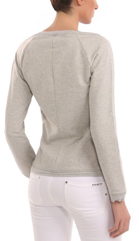 Grijze trui met mooi MET logo op de voorkant. De letters zijn gemaakt van gouden en zilveren pailletten met goude kettingen eraan. Helemaal hot voor deze lente en/of herfst!