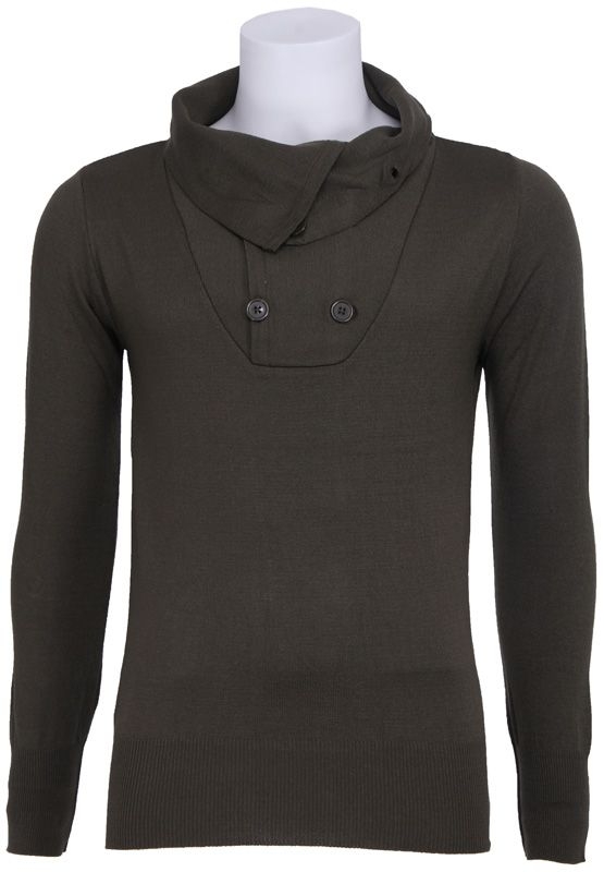 Army groene trui van Zumo. Mooi aansluitend model met knopen bij de hals.
