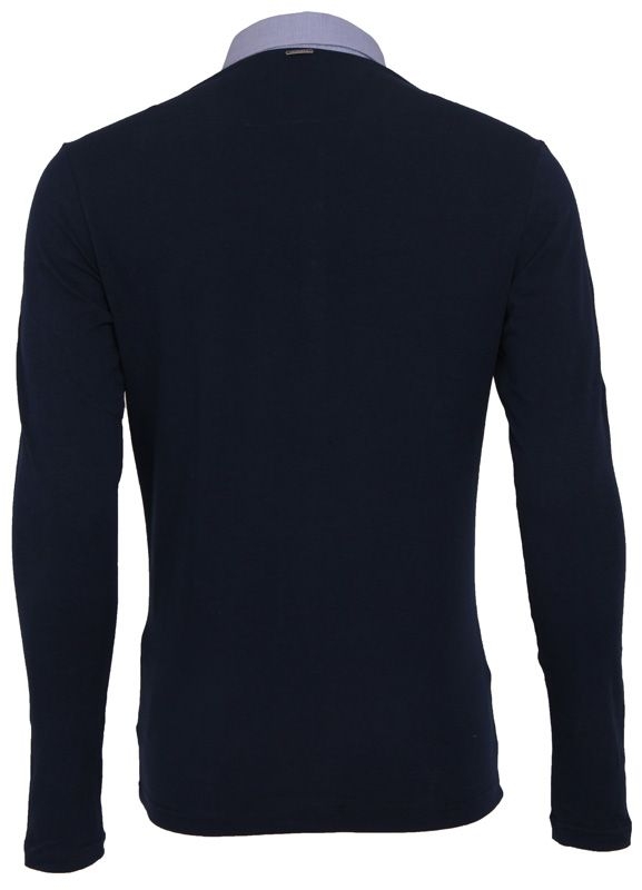 Mooie donkerblauwe polo (longsleeve) van het merk Antony Morato, voorzien van licht blauwe kraag (aansluitende model).