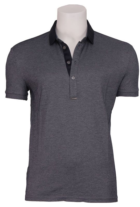 Grijze polo van Antony Morato met donkerblauwe boord. Lengte normaal.