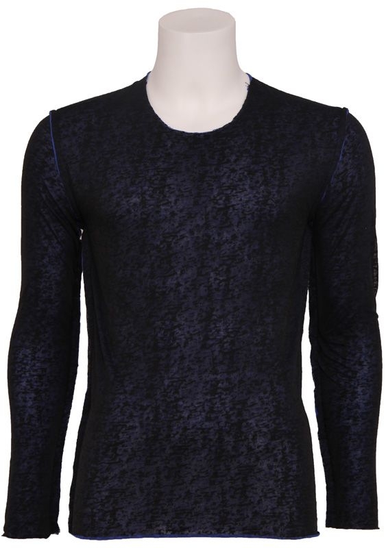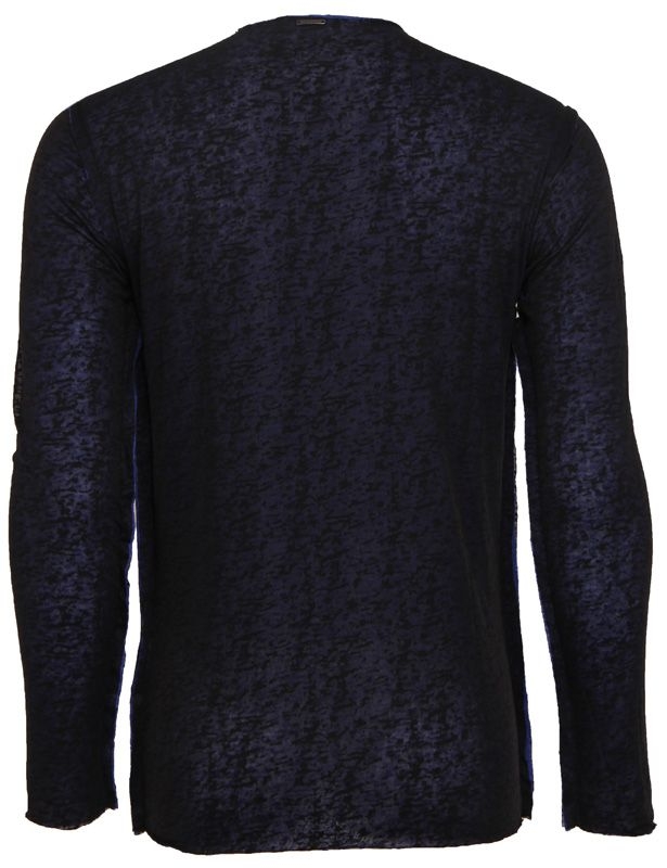 Zwarte longsleeve van Antony Morato met ronde hals en apart motief, dit komt door de blauwe binnenkant die er doorheen schijnt. Normale pasvorm en lengte.