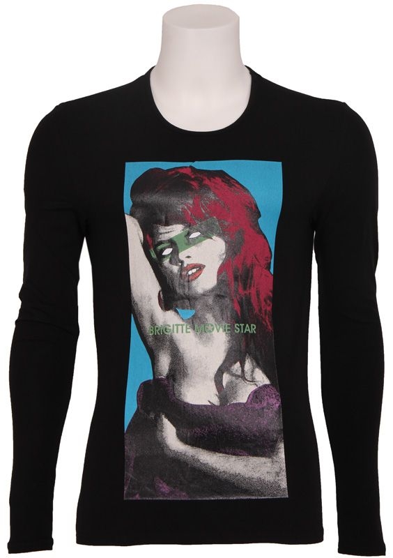 Zwart shirt (longsleeve) van het merk Antony Morato, met ronde hals. Op de voorkant heeft een shirt een mooi logo met een vrouw op en de tekst "Brigitte movie star"