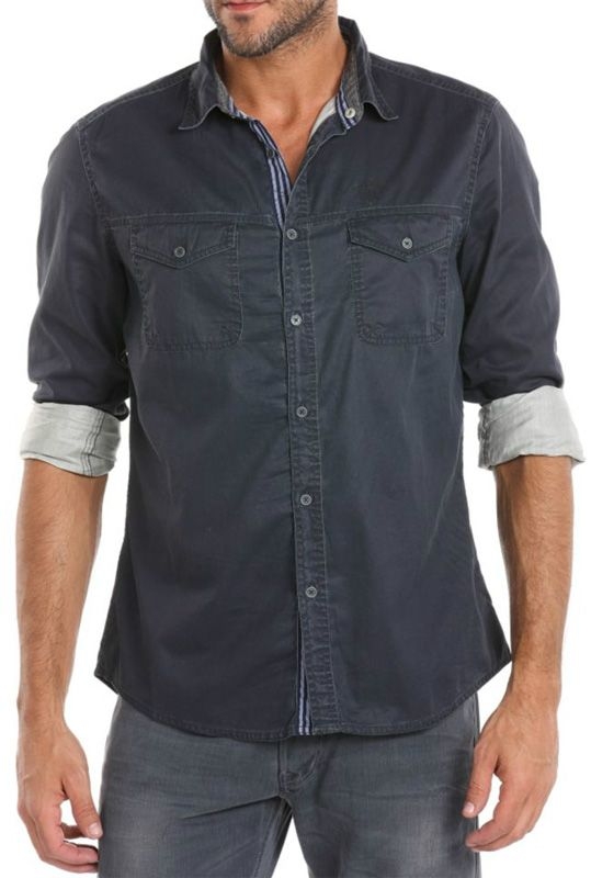 Sluiting van de blouse is met knopen en op de voorkant zitten twee zakjes. Lengte en pasvorm is normaal. Dit Guess herenoverhemd geeft een een mooi