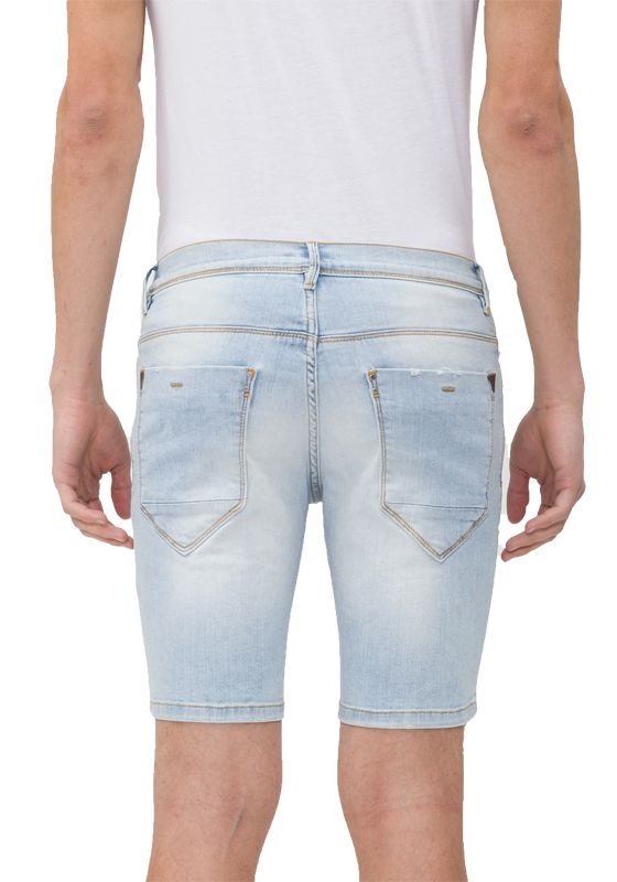 Korte jeans van Antony Morato in een lichtblauwe wassing. Het is een skinny model met pijpen tot net boven de knieën. Twee zakken op de achterkant en 'echte' zakken op de voorkant om je spullen in op te bergen. Sluiting met één knoop en rits.