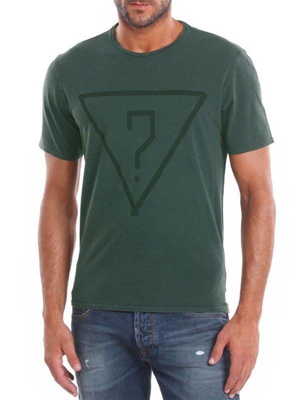 Logoshirt van Guess in het donkergroen. Het shirt heeft een normale pasvorm en een ronde hals.