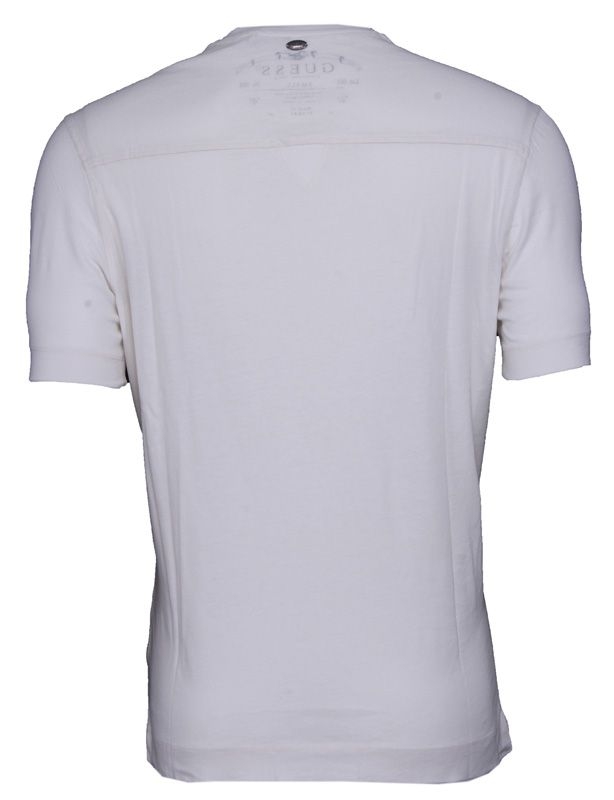 T-shirt van Guess en de kleur wit / beige. Op de voorkant een groot logo wat eruit ziet als een volgeschreven papier. Het shirt valt ruim.