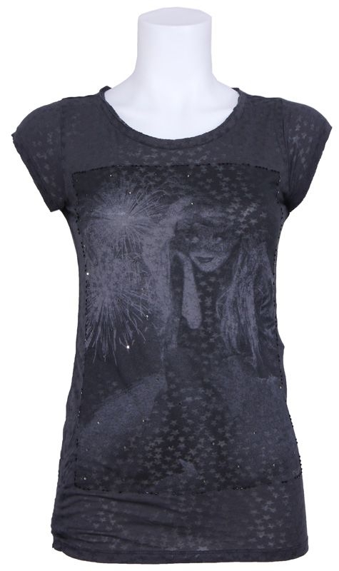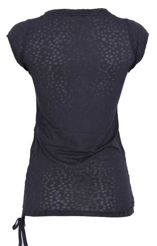 Zwart t-shirt van Dept met sterretjes. Speelse uitstraling door de strikjes onderaan.