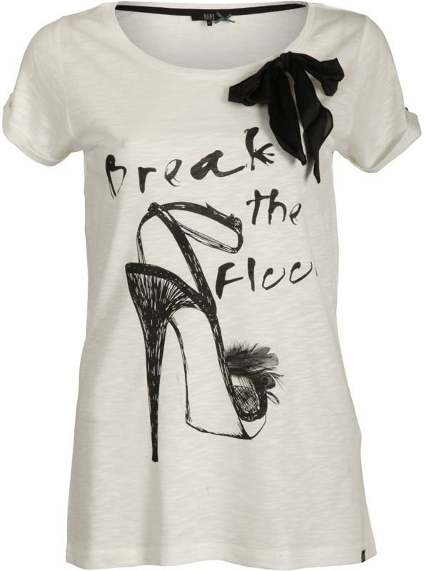 Leuk shirt van Dept in de kleur wit. Leuke gedecoreerd met de strik op de voorkant bij de ronde kraag. Het shirt heeft een normale pasvorm.