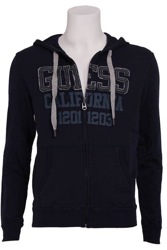 Fleece vest van Guess met de merknaam groot op de voorkant geschreven. Het vest heeft een heerlijke capuchon.