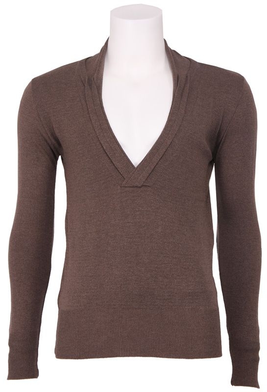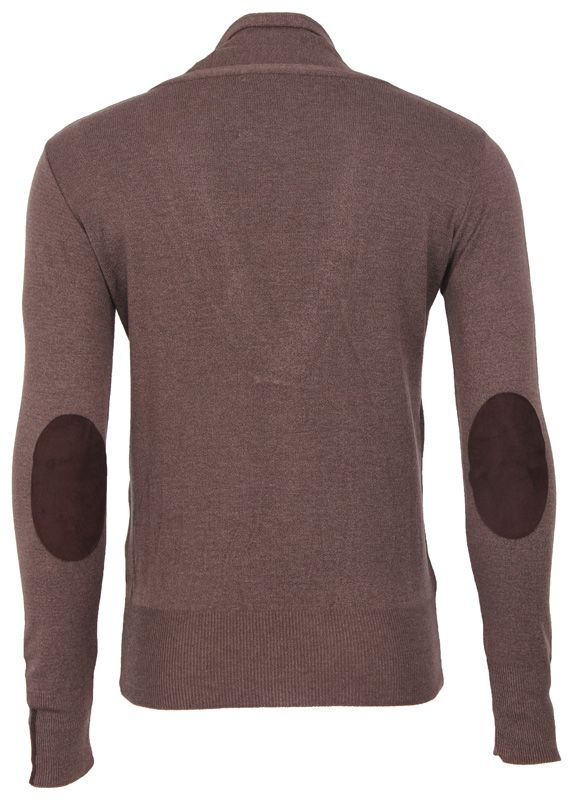 Bruine trui met diepe v-hals van zumo met lange mouwen. Voorzien van elleboog stukken in een donkere kleur bruin.