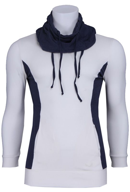 Longsleeve van Zumo met driekwart mouw die op 2 verschillende manieren te dragen is. Met touwtjes kan de col worden aangetrokken aan de voorkant. LET OP: Zumo is italiaans en valt hierdoor een maat kleiner. Bestel een maat groter dan je gewend bent.