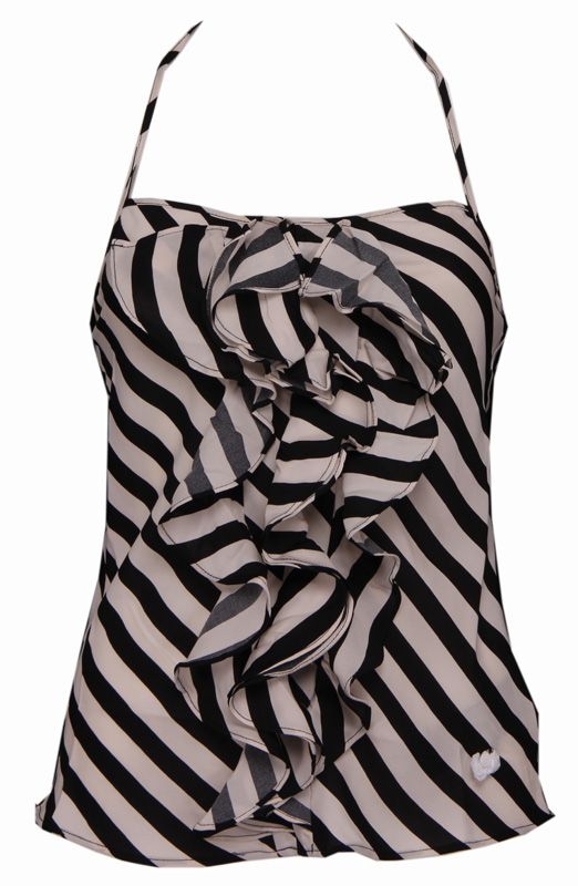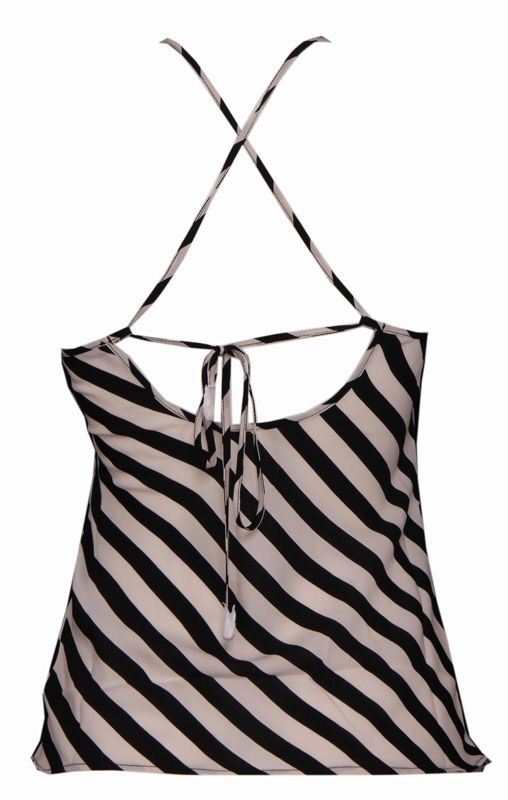 Mooie wit / zwart gestreepte top van Phard. Aan de voorkant leuk gedecoreerd met franjels in dezelfde wit / zwarte stof. De achterkant heeft een diepe rug met gekruiste bandjes die op bh hoogte worden gestrikt.