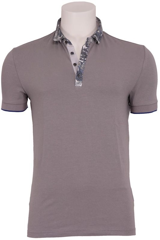 Grijze Polo van Antony Morato met leuk bloemen motief bij de kraag. De kraag is uitgevoerd in bijpassende kleur. Normale pasvorm en lengte.